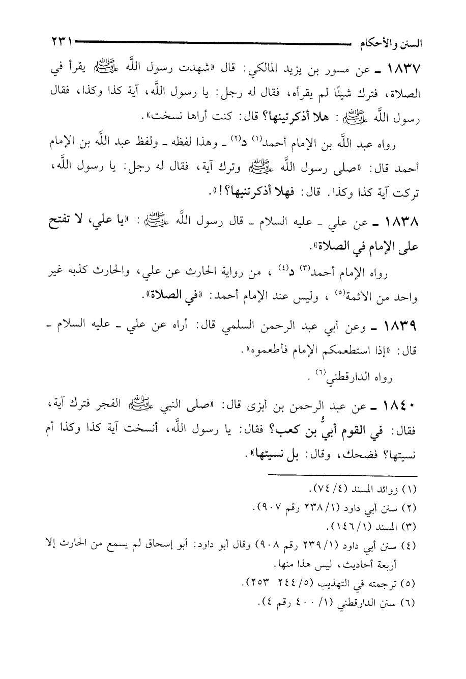 (¬4) سنن أبي داود (1/ 239 رقم 908) وقال أبو داود: أبو إسحاق لم يسمع من الحارث إلا أربعة أحاديث، ليس هذا منها.