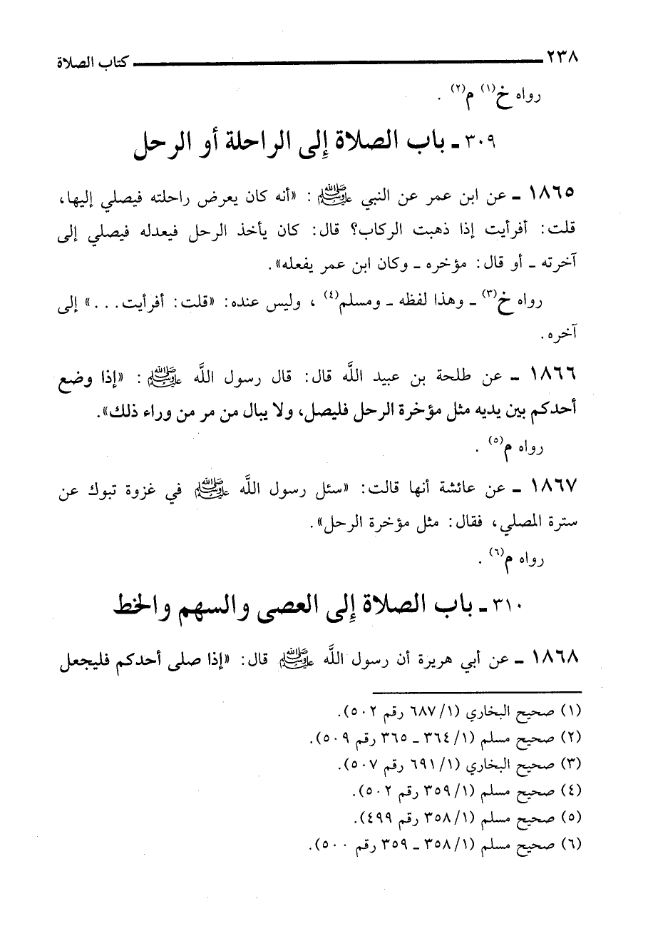 309 - باب الصلاة إِلى الراحلة أو الرحل