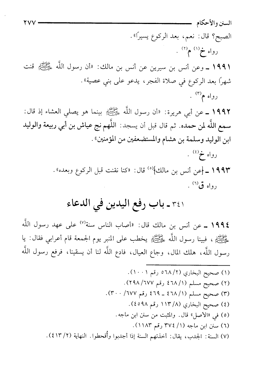 1991 - وعن أنس بن سيرين عن أنس بن مالك: "أن رسول الله - صلى الله عليه وسلم - قنت شهرًا بعد الركوع في صلاة الفجر، يدعو على بني عصية".