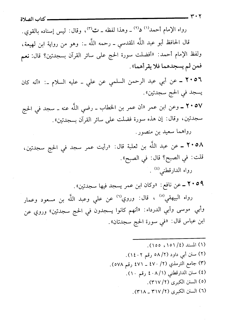 2056 - عن أبي عبد الرحمن السلمي عن علي -عليه السلام-: "أنه كان يسجد في الحج سجدتين".