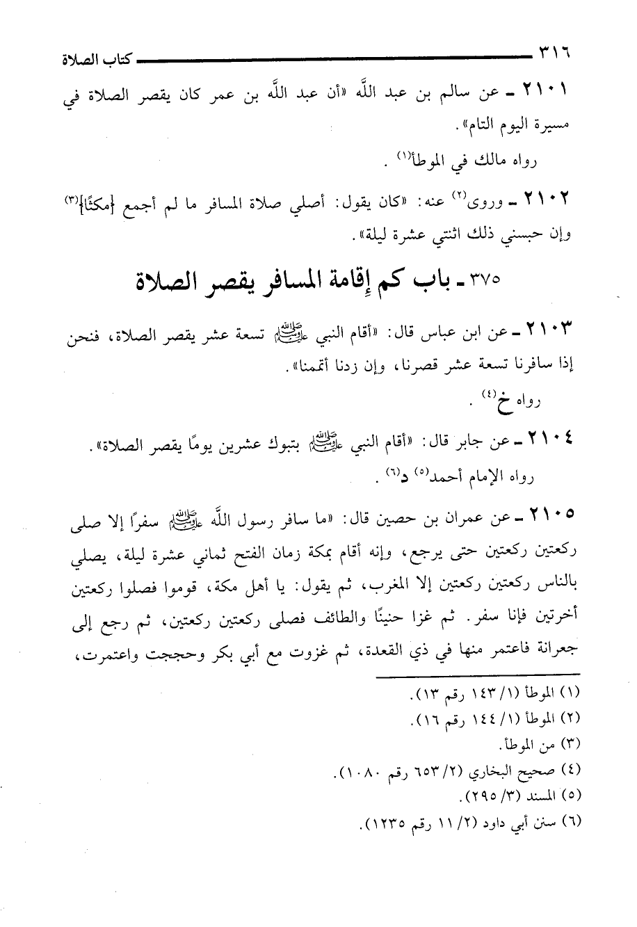 2101 - عن سالم بن عبد الله "أن عبد الله بن عمر كان يقصر الصلاة في مسيرة اليوم التام".