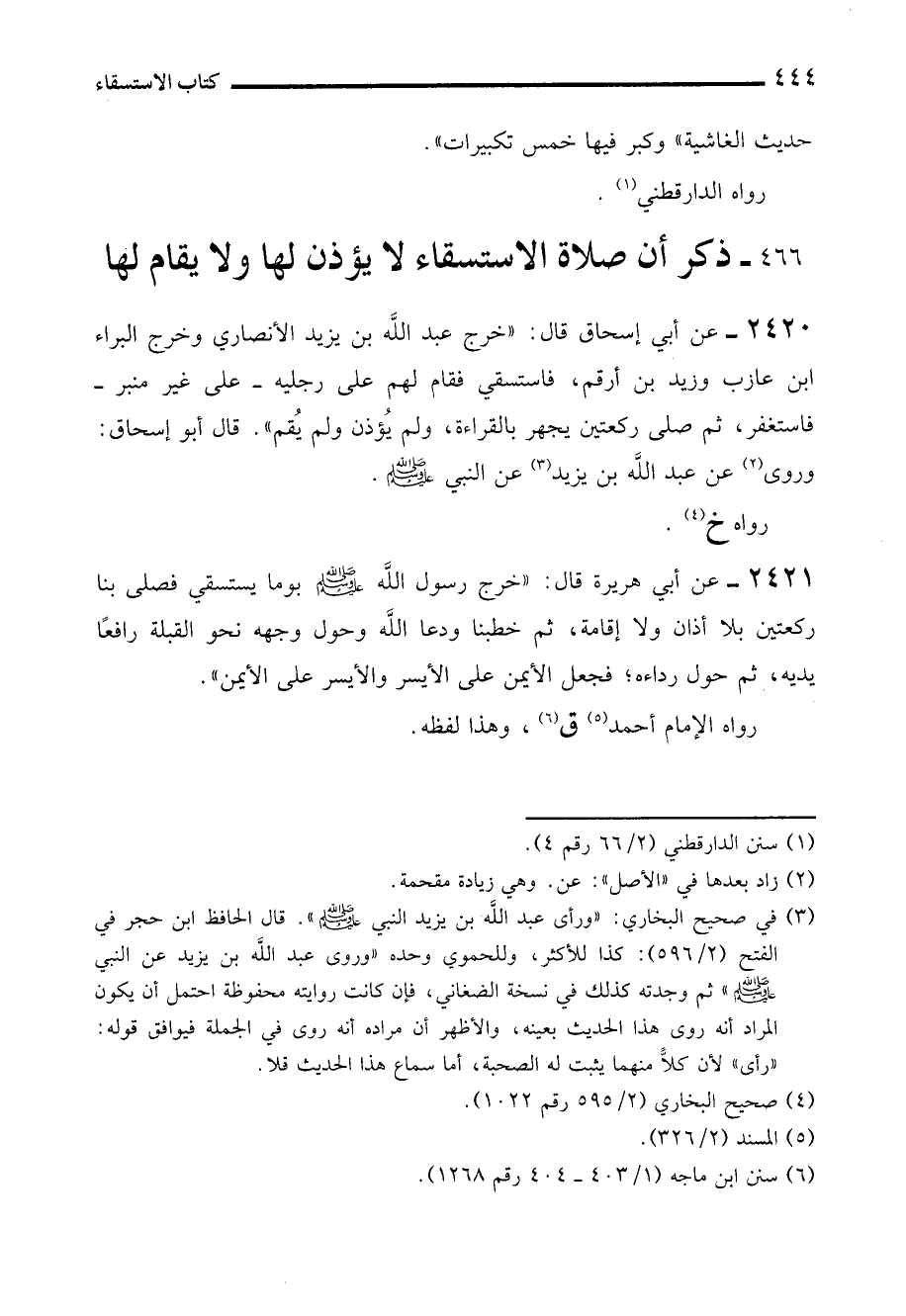 2420 - عن أبي إسحاق قال: "خرج عبد الله بن يزيد الأنصاري وخرج البراء ابن عازب وزيد بن أرقم، فاستسقي فقام لهم على رجليه -على غير منبر- فاستغفر، ثم صلى ركعتين يجهر بالقراءة، ولم يُؤذن ولم يُقم". قال أبو إسحاق: وروى (¬2) عن عبد الله بن يزيد (¬3) عن النبي - صلى الله عليه وسلم -.