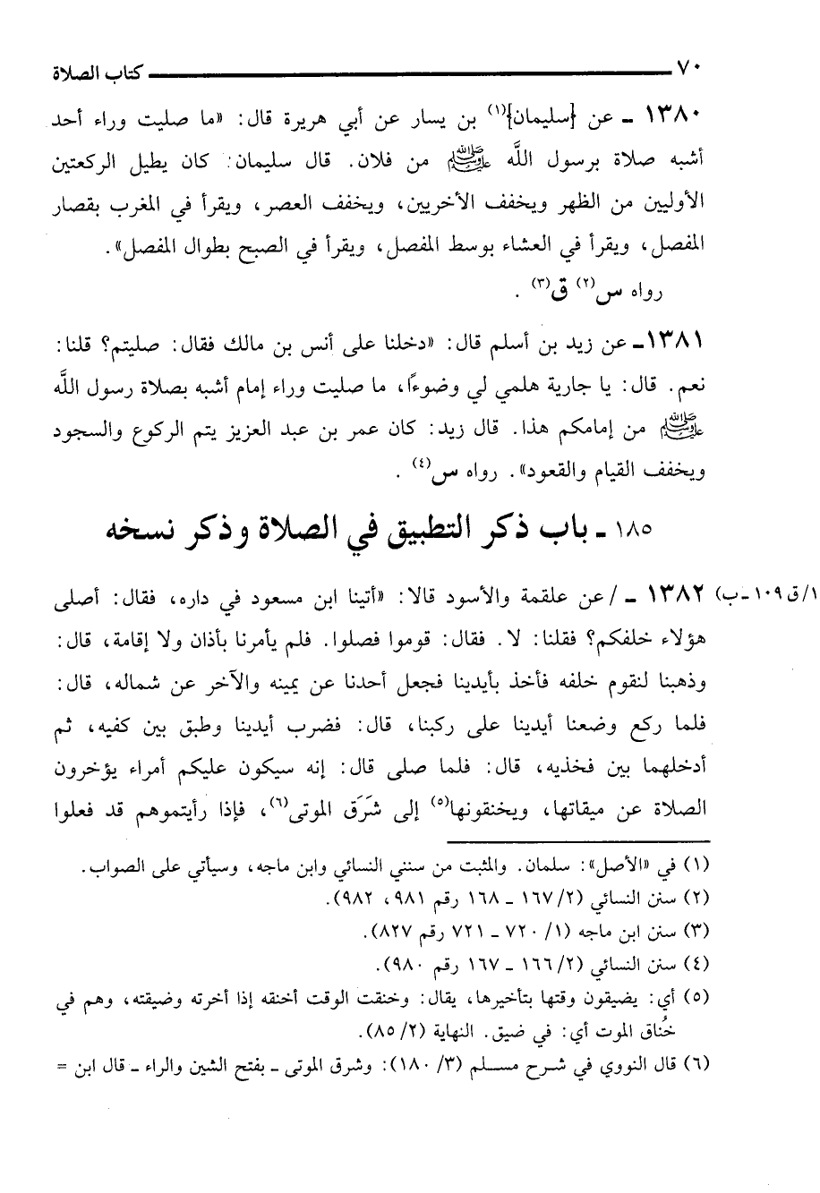 185 - باب ذكر التطبيق في الصلاة وذكر نسخه