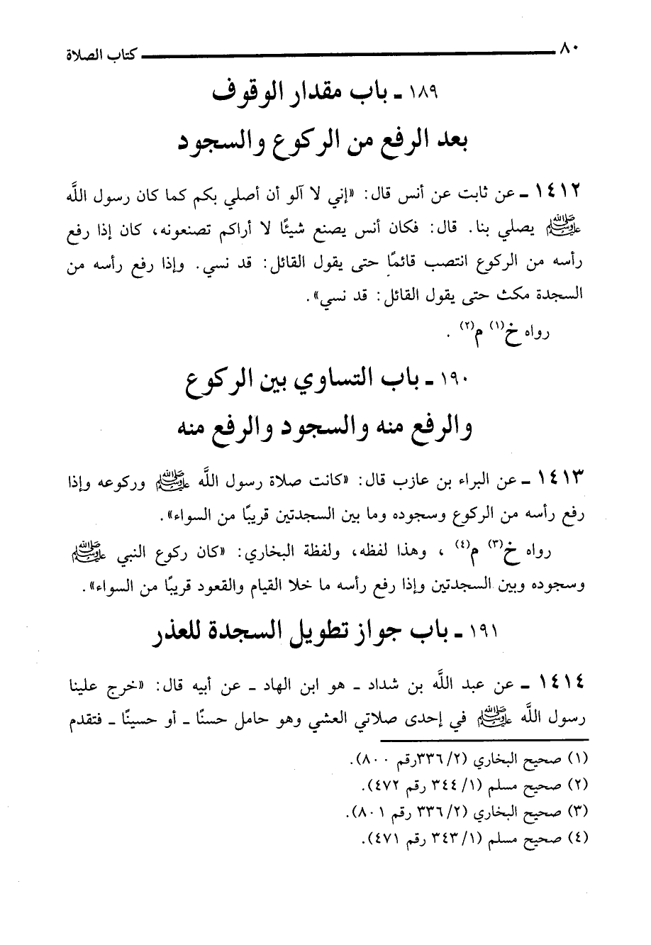 190 - باب التساوي بين الركوع والرفع منه والسجود والرفع منه