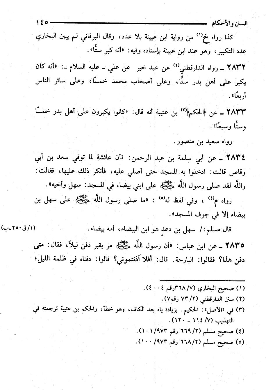 2833 - عن (الحكم) (¬3) بن عتيبة أنه قال: "كانوا يكبرون على أهل بدر خمساً وستًا وسبعًا".