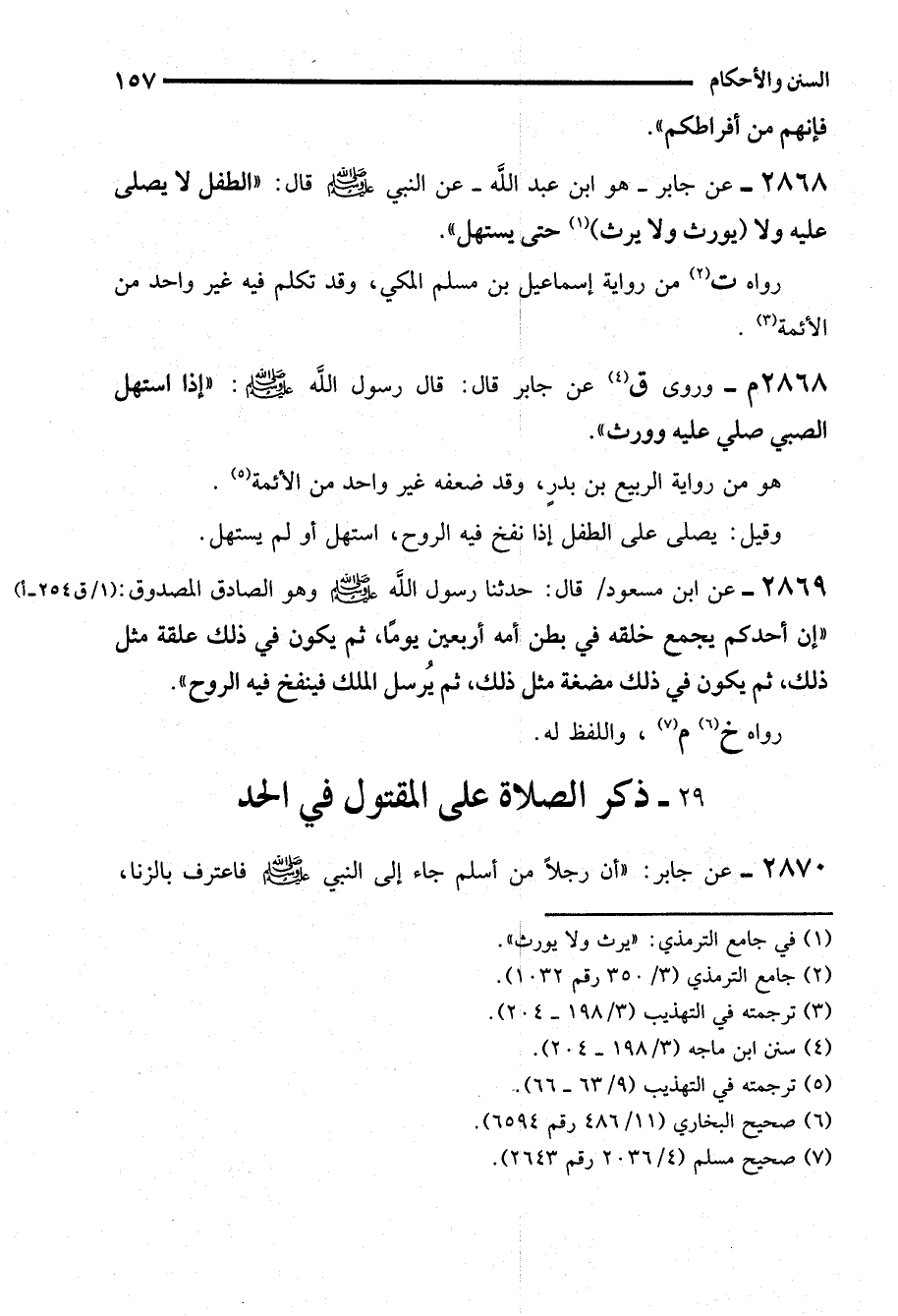 2868م- وروى ق (¬4) عن جابر قال: قال رسول الله - صلى الله عليه وسلم -: "إذا استهل الصبي صلي عليه وورث".
