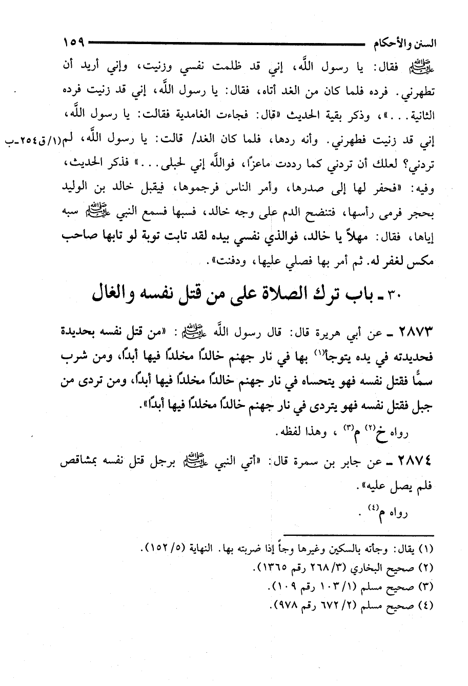 30 - باب ترك الصلاة على من قتل نفسه والغال