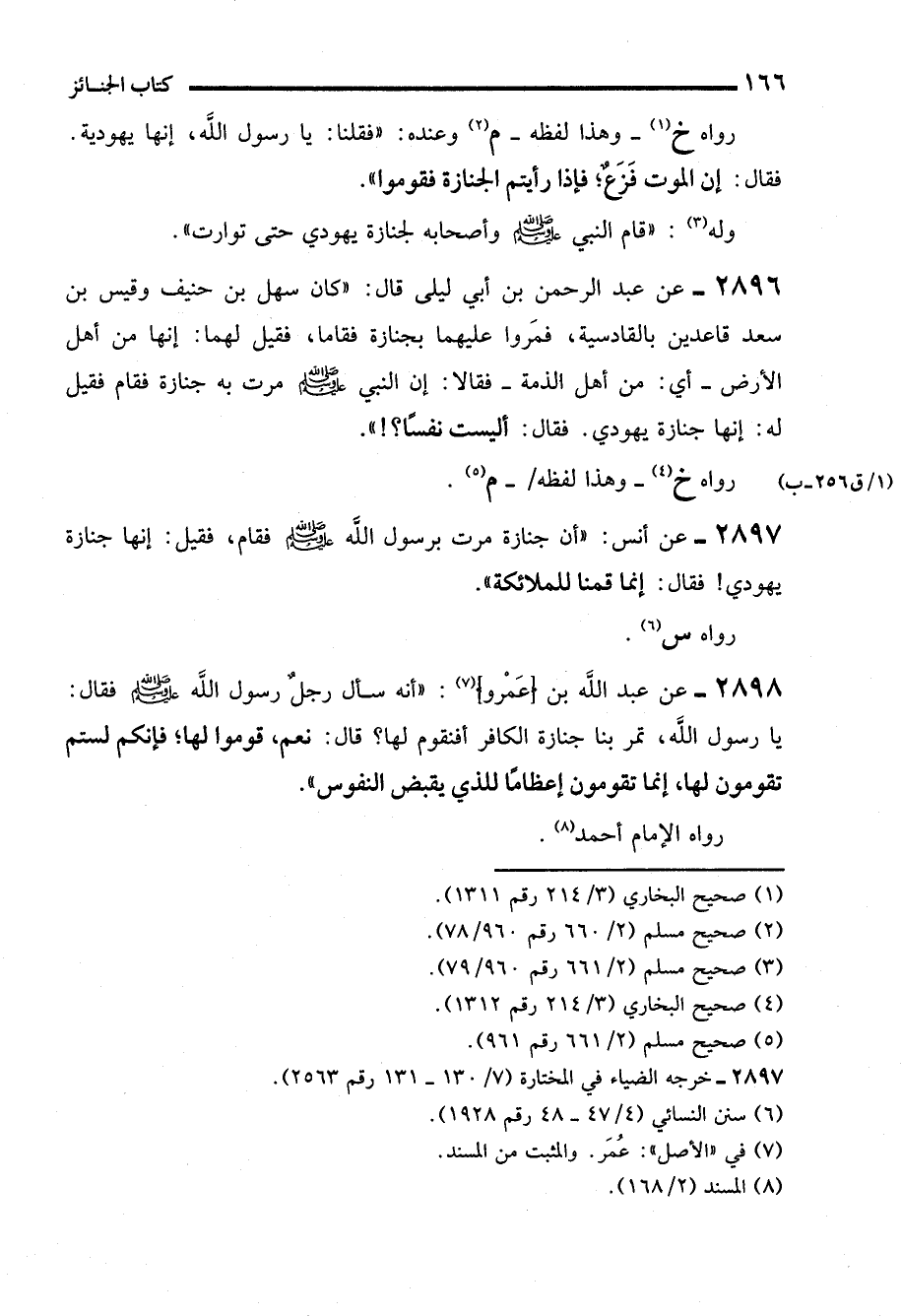 2897 - عن أنس: "أن جنازة مرت برسول الله - صلى الله عليه وسلم - فقام، فقيل: إنها جنازة يهودي! فقال: إنما قمنا للملائكة".