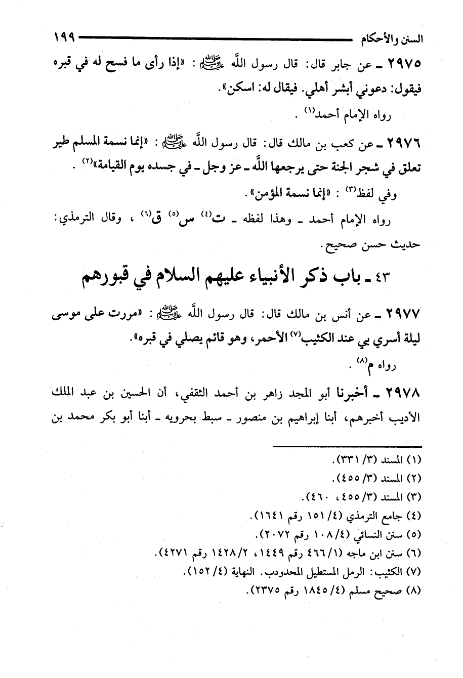 2977 - عن أنس بن مالك قال: قال رسول الله - صلى الله عليه وسلم -: "مررت على موسى ليلة أسري يى عند الكثيب (¬7) الأحمر، وهو قائم يصلي في قبره".