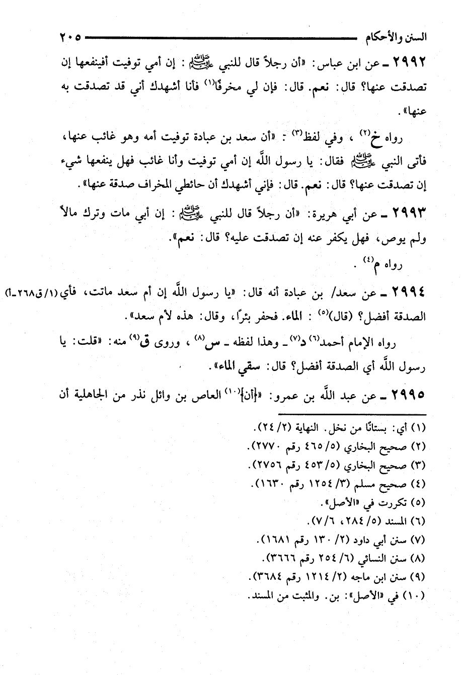 2994 - عن سعد بن عبادة أنه قال: "يا رسول الله إن أم سعد ماتت، فأي الصدقة أفضل؟ (قال) (¬5): الماء. فحفر بئرًا، وقال: هذه لأم سعد".