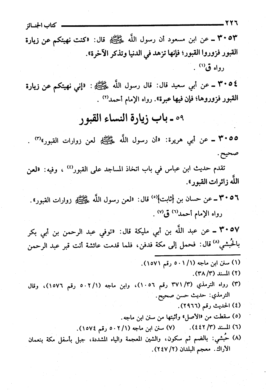3056 - عن حسان بن (ثابت) (¬5) قال: "لعن رسول الله - صلى الله عليه وسلم - زوارات القبور".