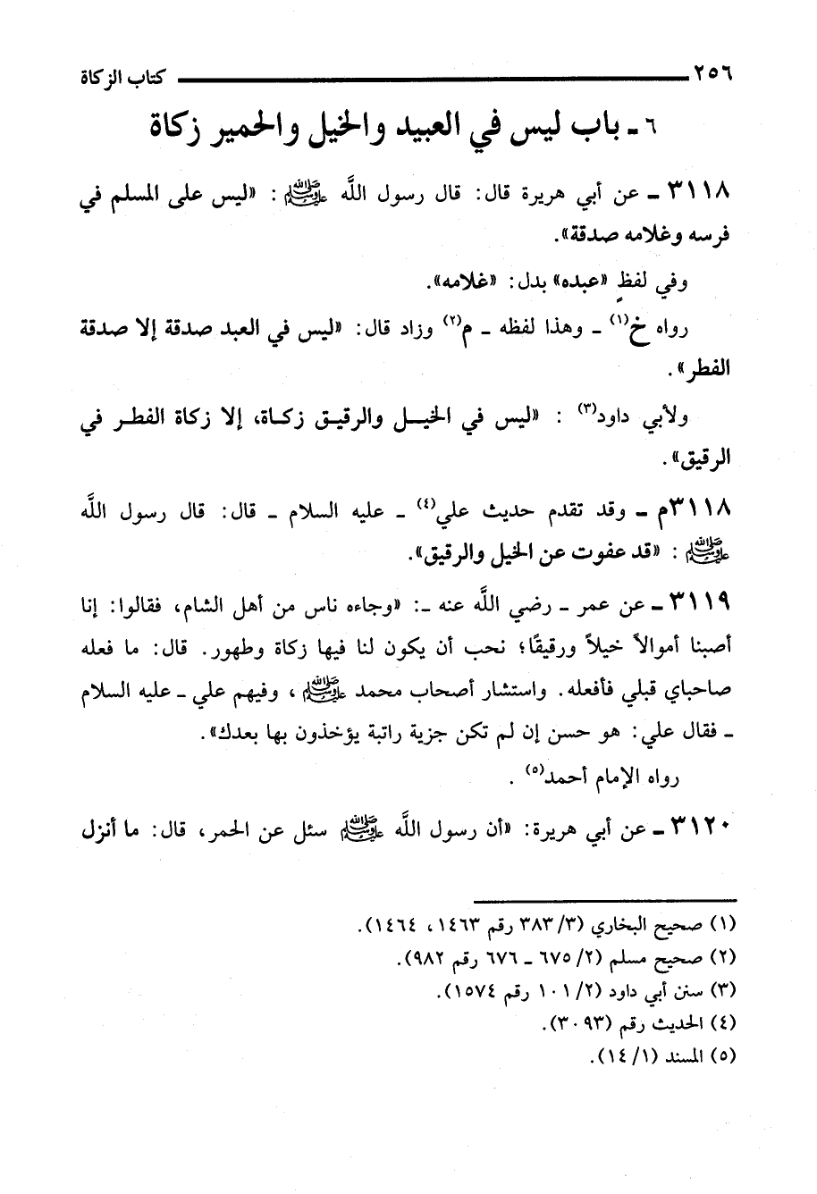 3118م- وقد تقدم حديث علي (¬4) -رضي الله عنه- قال: "قال رسول الله - صلى الله عليه وسلم -: "قد عفوت عن الخيل والرقيق".