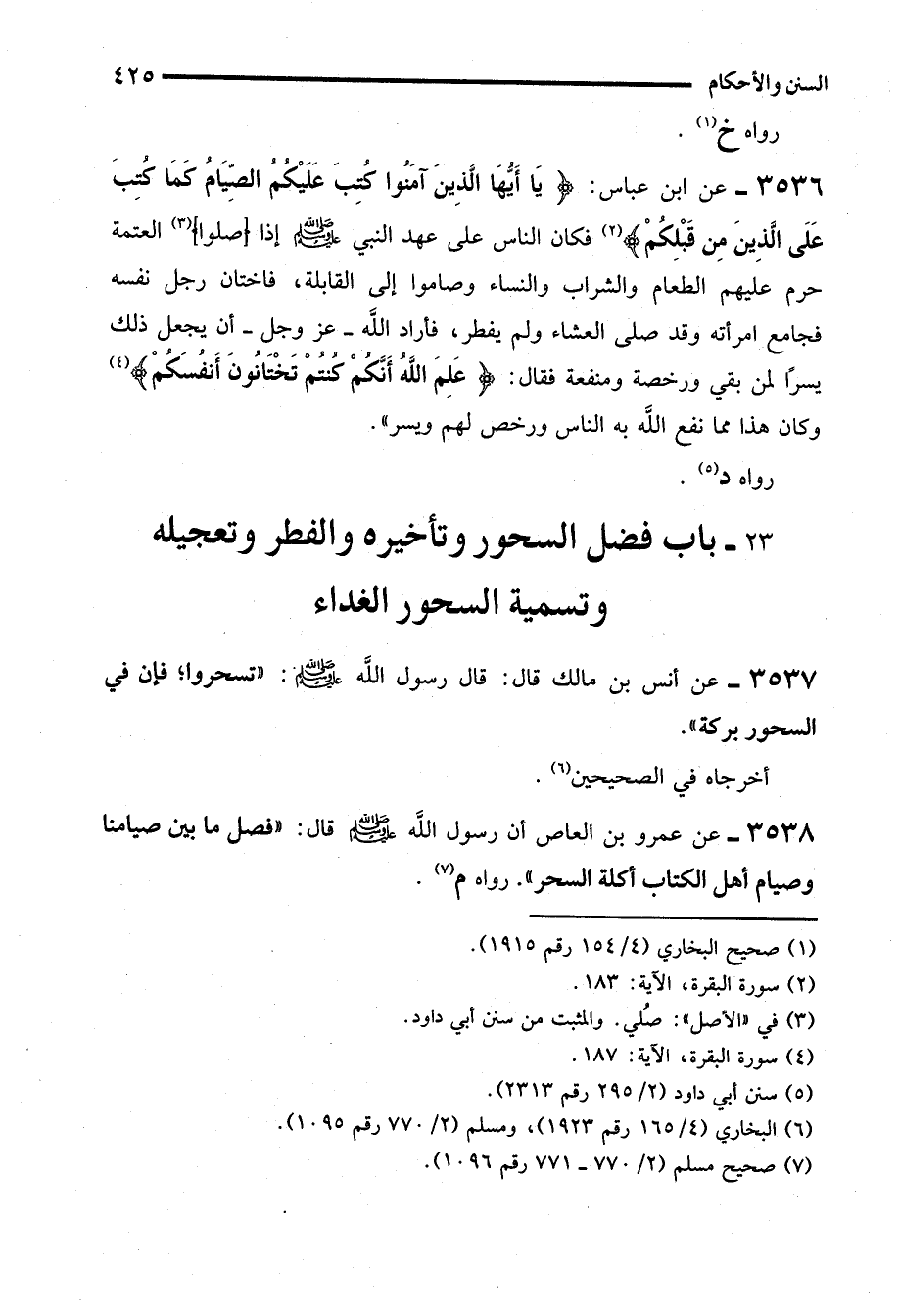 3538 - عن عمرو بن العاص أن رسول الله - صلى الله عليه وسلم - قال: "فصل ما بين صيامنا وصيام أهل الكتاب أكلة السحر". رواه م (¬7).