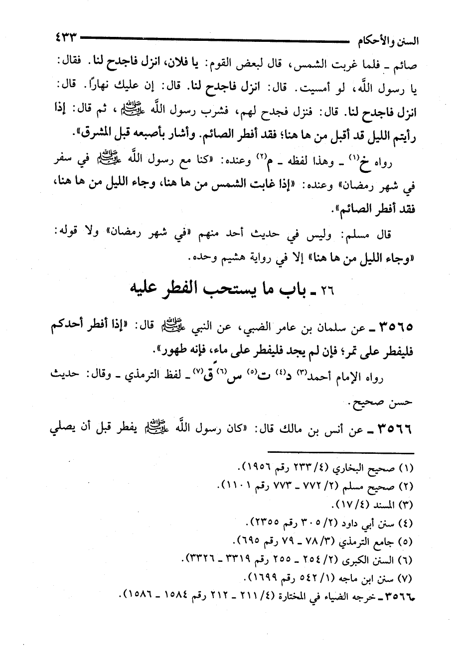 3565 - عن سلمان بن عامر الضبي، عن النبي - صلى الله عليه وسلم - قال: "إذا أفطر أحدكم فليفطر على تمر؛ فإن لم يجد فليفطر على ماءٍ؛ فإنه طهور".
