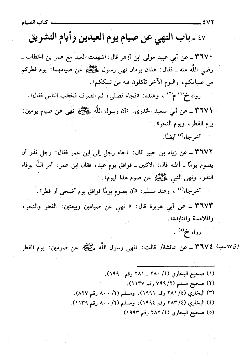 47 - باب النهي عن صيام يوم العيدين وأيام التشريق