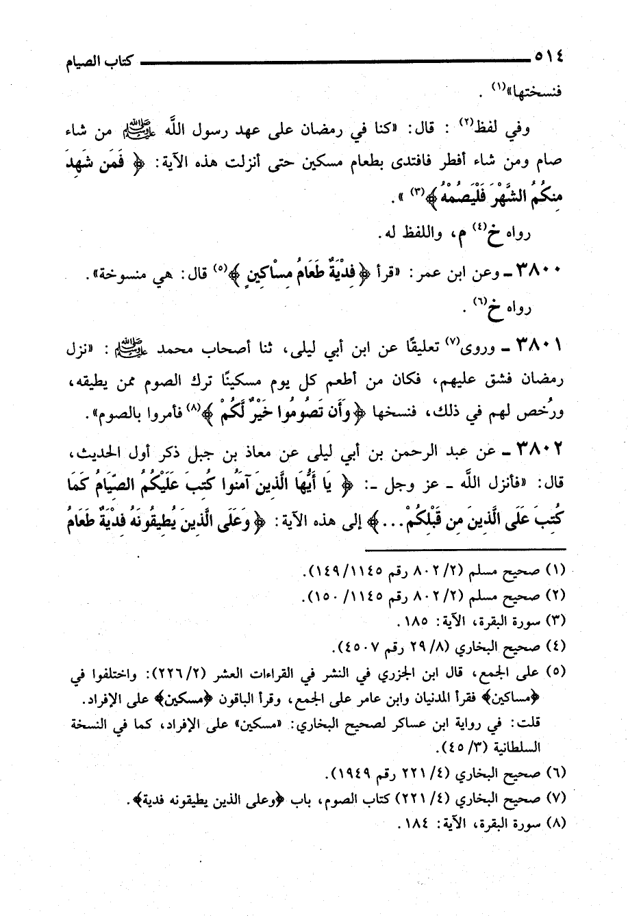 (¬7) صحيح البخاري (4/ 221) كتاب الصوم، باب {وَعَلَى الَّذِينَ يُطِيقُونَهُ فِدْيَةٌ}.