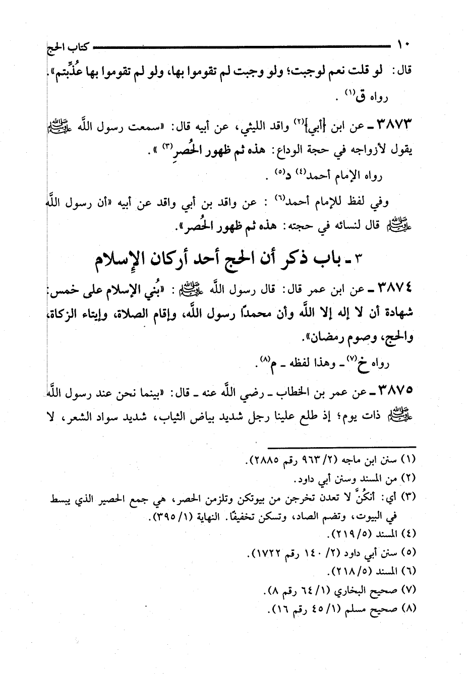 3 - باب ذكر أن الحج أحد أركان الإِسلام