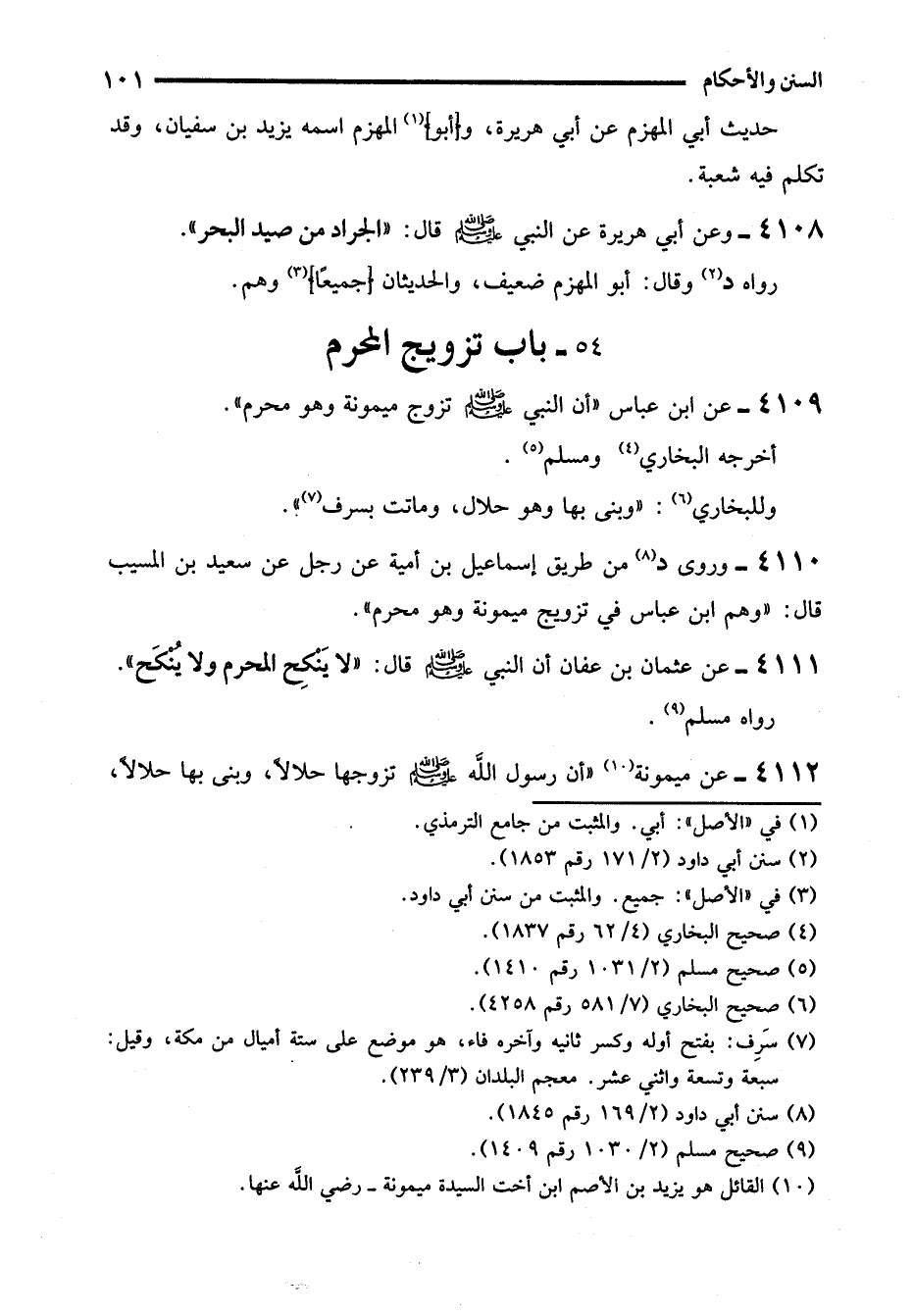 4110 - وروى د (¬8) من طريق إسماعيل بن أمية عن رجل عن سعيد بن المسيب قال: "وهم ابن عباس في تزويج ميمونة وهو محرم".