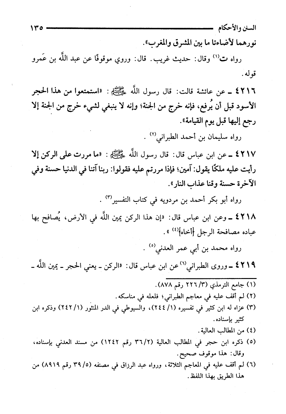 4218 - وعن ابن عباس قال: "إن هذا الركن يمين الله في الأرض، يُصافح بها عباده مصافحة الرجل (أخاه) (¬4) ".