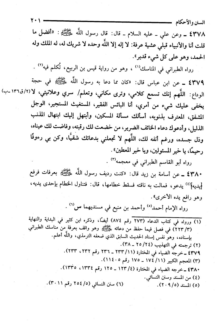 4380 - عن أسامة بن زيد قال: "كنت رديف رسول الله - صلى الله عليه وسلم - بعرفات فرفع (يديه) (¬4) يدعو، فمالت به ناقته فسقط خطامها، قال: فتناول الخطام بإحدى يديه، وهو رافع يده الأخرى".