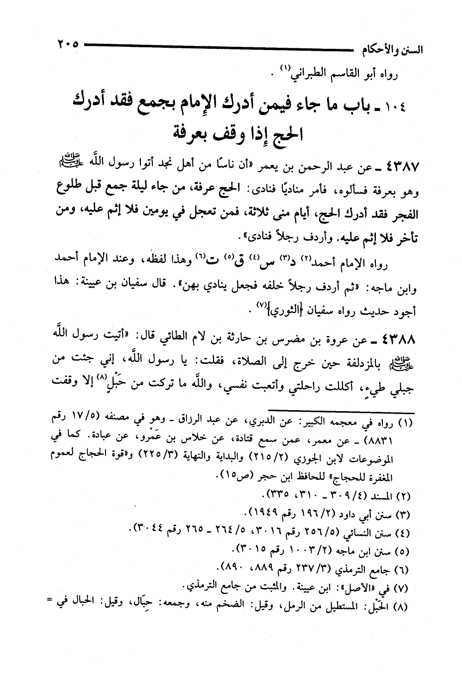 104 - باب ما جاء فيمن أدرك الإِمام بجمع فقد أدرك الحج إِذا وقف بعرفة