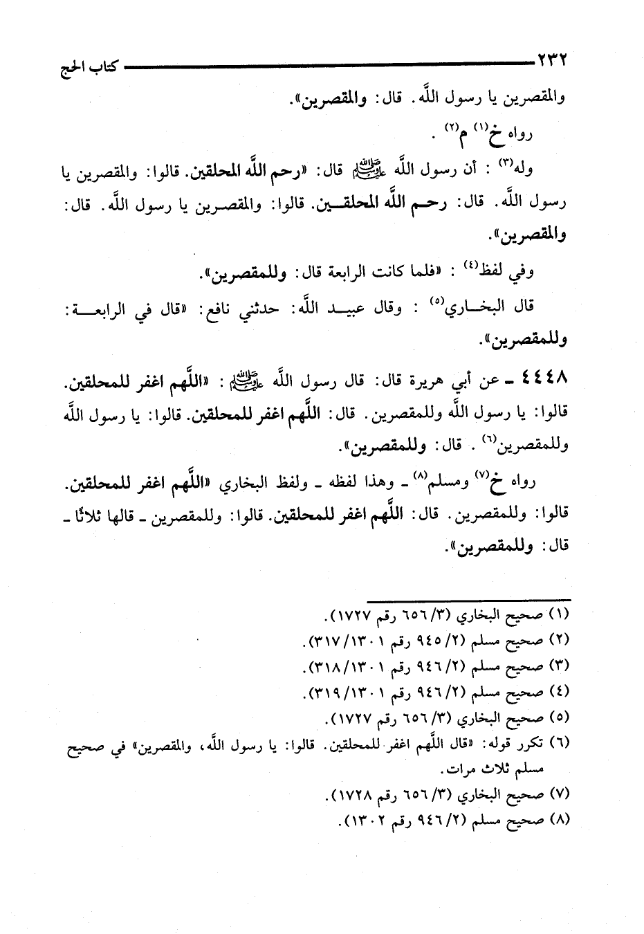 (¬6) تكرر قوله: "قال اللهم اغفر للمحلقين. قالوا: يا رسول الله، والمقصرين" في صحيح مسلم ثلاث مرات.