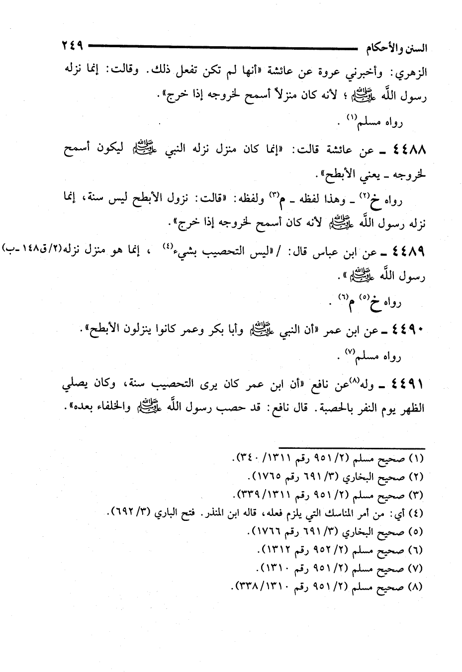4490 - عن ابن عمر "أن النبي - صلى الله عليه وسلم - وأبا بكر وعمر كانوا ينزلون الأبطح".
