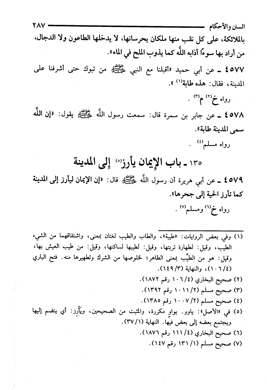 135 - باب الإِيمان يأرز (¬5) إِلى المدينة