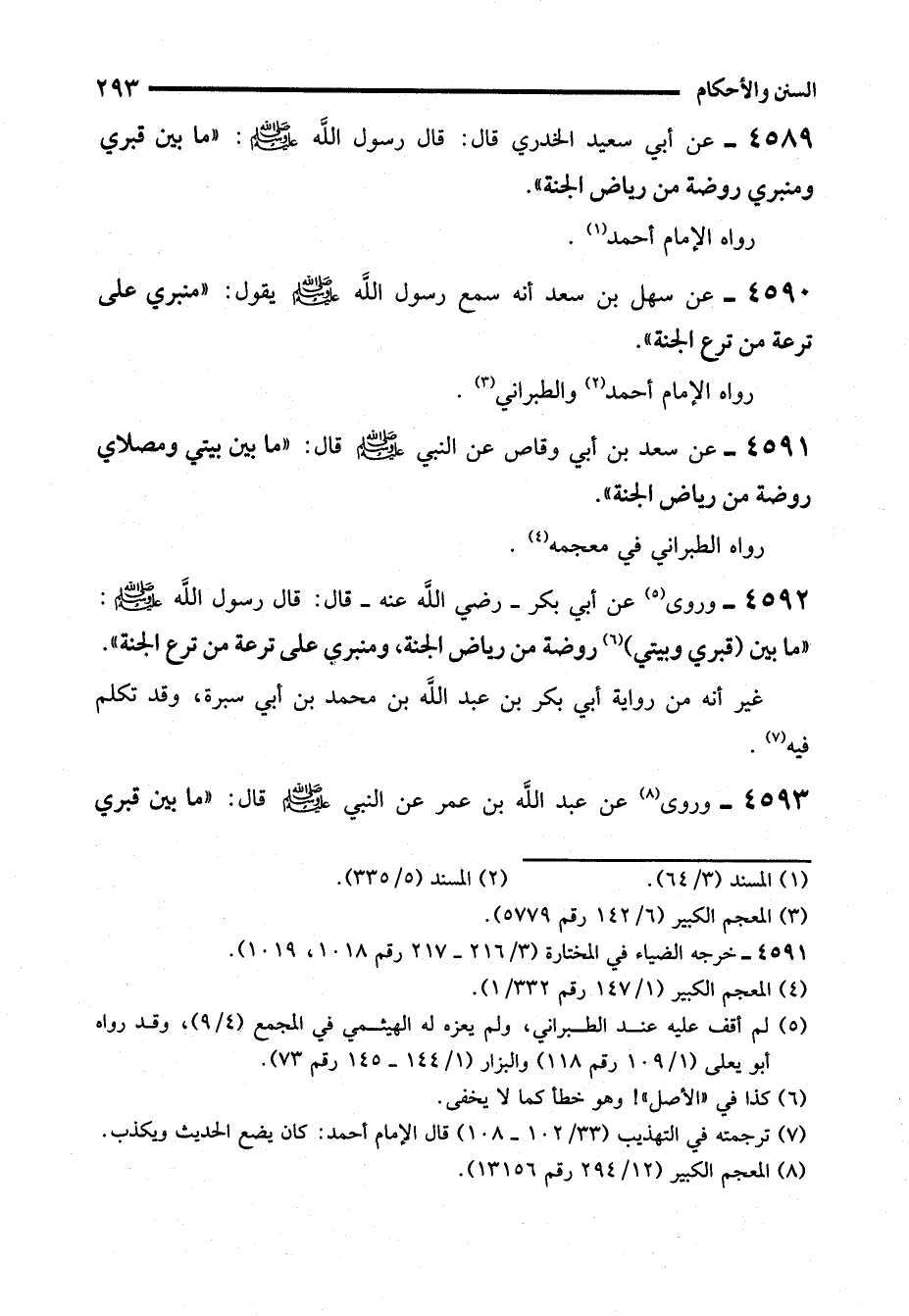 4593 - وروى (¬8) عن عبد الله بن عمر عن النبي - صلى الله عليه وسلم - قال: "ما بين قبري
