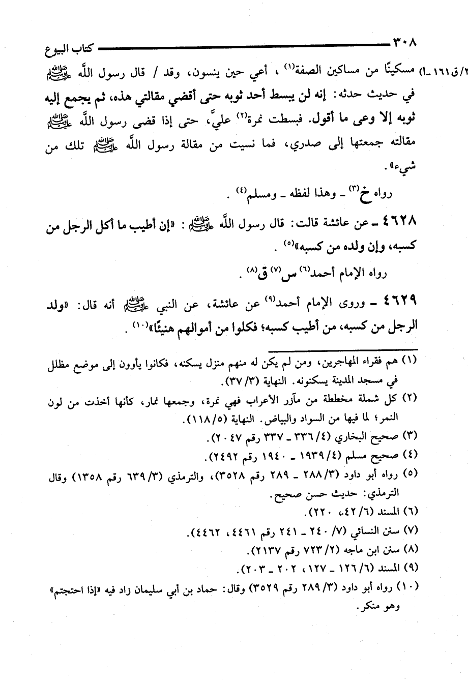 4628 - عن عائشة قالت: قال رسول الله - صلى الله عليه وسلم - "إن أطيب ما أكل الرجل من كسبه، وإن ولده من كسبه" (¬5).