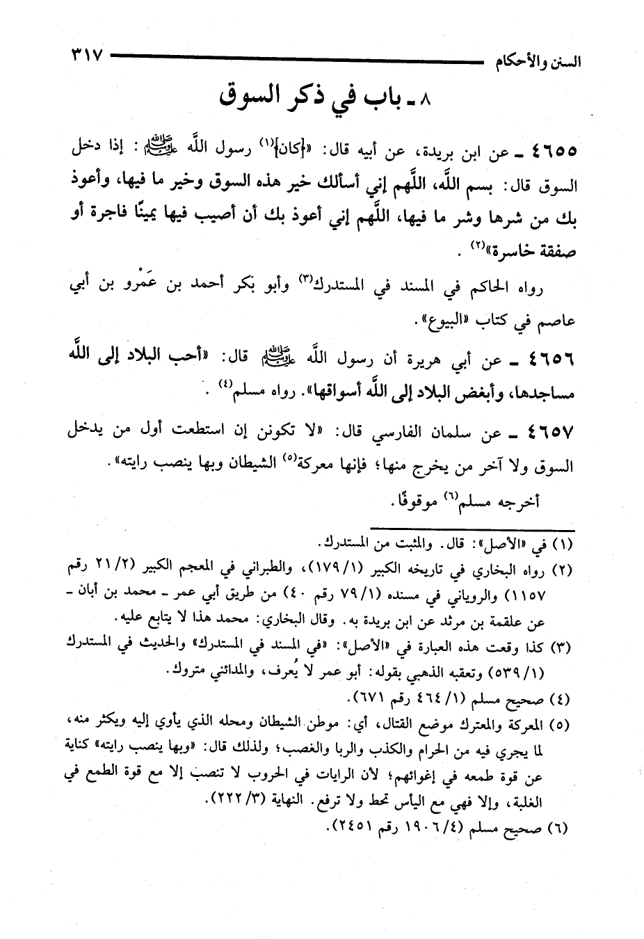 4655 - عن ابن بريدة، عن أبيه قال: " (كان) (¬1) رسول الله - صلى الله عليه وسلم -: إذا دخل السوق قال: بسم الله، اللهم إني أسألك خير هذه السوق وخير ما فيها، وأعوذ بك من شرها وشر ما فيها، اللهم إني أعوذ بك أن أصيب فيها يمينًا فاجرة أو صفقة خاسرة" (¬2).