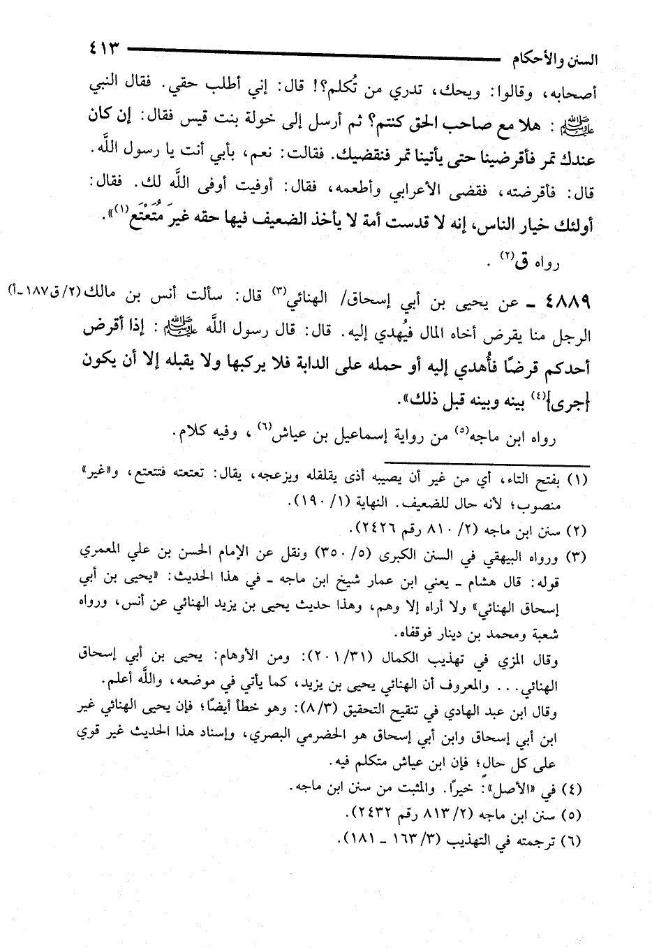 (¬3) ورواه البيهقي في السنن الكبرى (5/ 350) ونقل عن الإمام الحسن بن علي المعمري قوله: قال هشام -يعني ابن عمار شيخ ابن ماجه- في هذا الحديث: يحيى بن أبي إسحاق الهنائي" ولا أراه إلا وهم، وهذا حديث يحيى بن يزيد الهنائي عن أنس، ورواه شعبة ومحمد بن دينار فوقفاه.