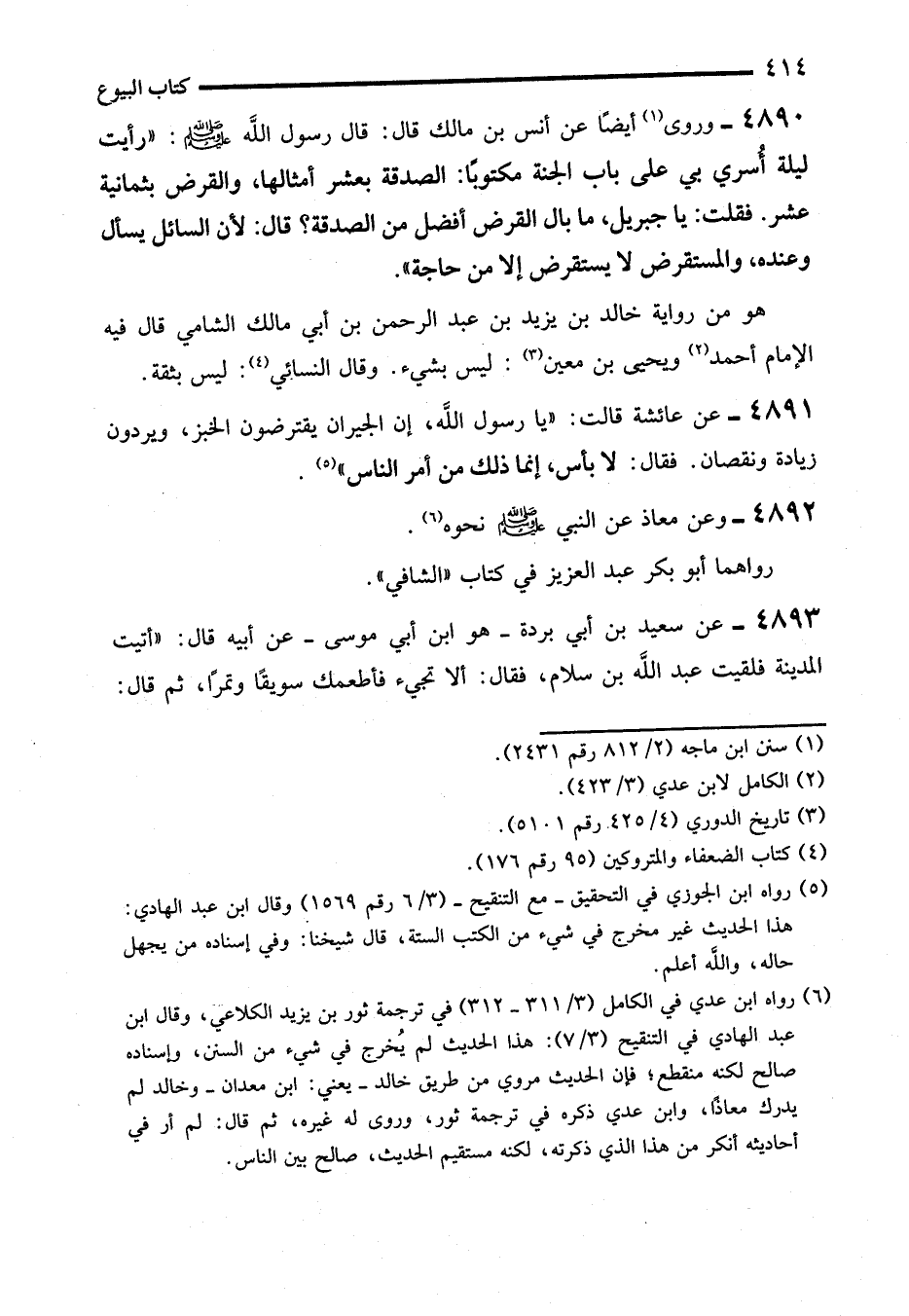 4891 - عن عائشة قالت: "يا رسول الله، إن الجيران يقترضون الخبز، ويردون زيادة ونقصان. فقال: لا بأس، إنما ذلك من أمر الناس" (¬5).