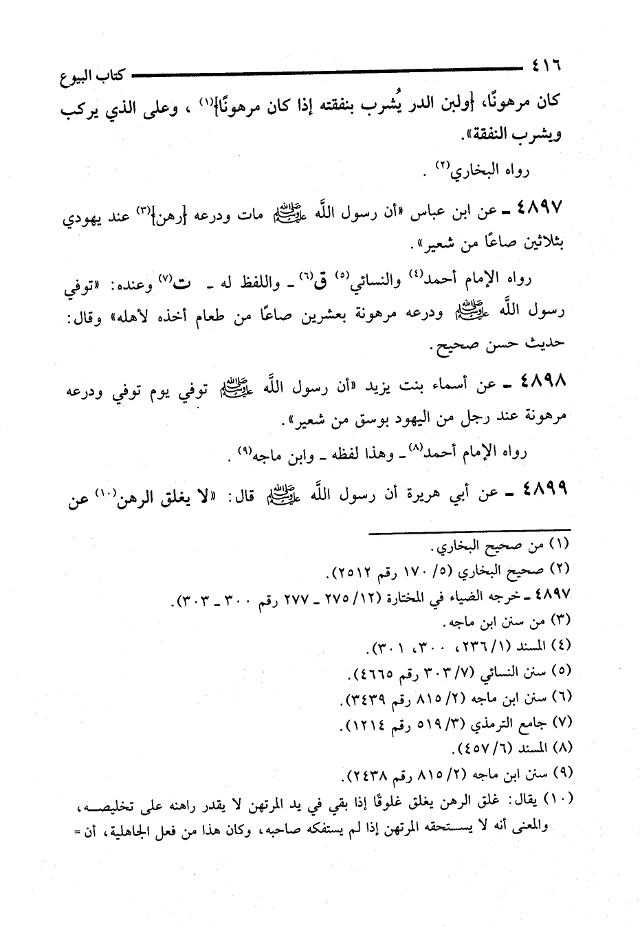 4897 - عن ابن عباس "أن رسول الله - صلى الله عليه وسلم - مات ودرعه (رهن) (¬3) عند يهودي بثلاثين صاعًا من شعير".