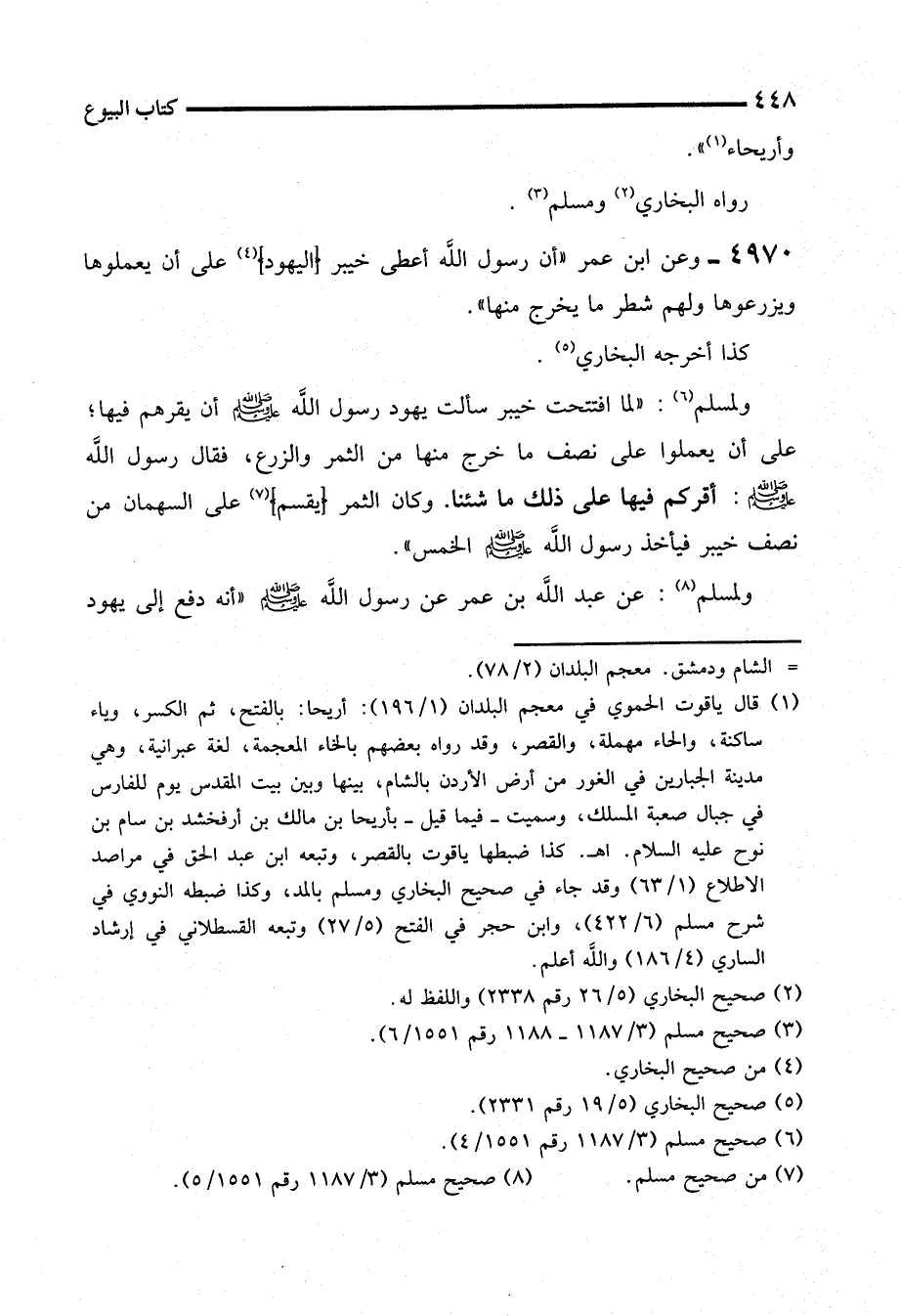 4970 - وعن ابن عمر "أن رسول الله أعطى خيبر (اليهود) (¬4) على أن يعملوها ويزرعوها ولهم شطر ما يخرج منها".
