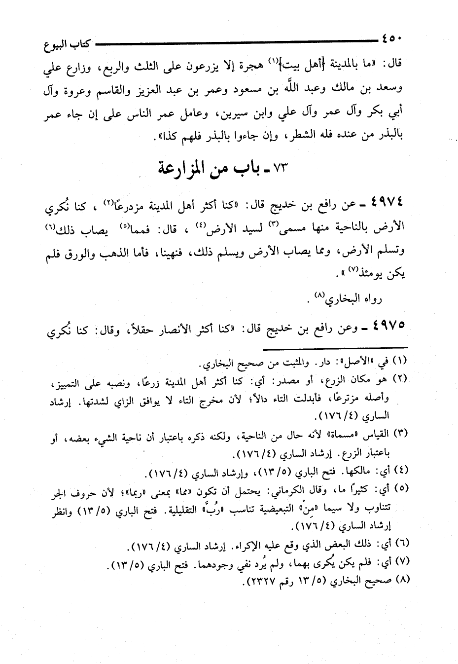 4975 - وعن رافع بن خديج قال: "كنا أكثر الأنصار حقلاً، وقال: كنا نُكري