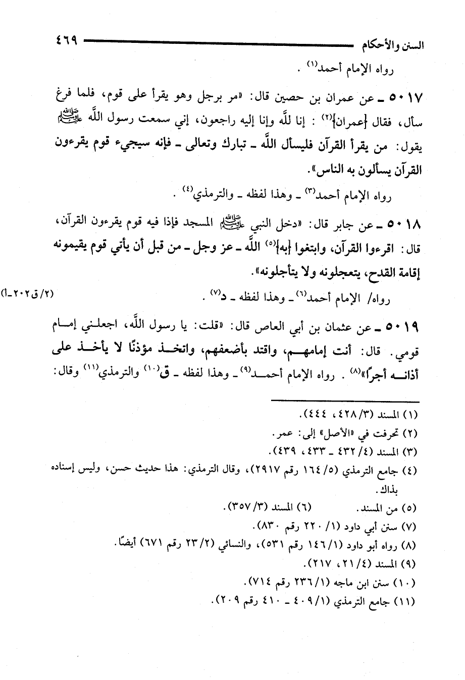 5017 - عن عمران بن حصين قال: "مر برجل وهو يقرأ على قوم، فلما فرغ سأل، فقال (عمران) (¬2): إنا لله وإنا إليه راجعون، إني سمعت رسول الله - صلى الله عليه وسلم - يقول: من يقرأ القرآن فليسأل الله -تبارك وتعالى- فإنه سيجيء قوم يقرءون القرآن يسألون به الناس".