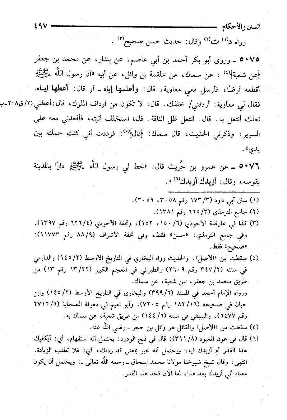 (¬6) قال في عون المعبود (8/ 311): قال في فتح الودود: يحتمل أنه استفهام، أي: أيكفيك هذا القدر أم أزيدك فيه، ويحتمل أنه خبر بمعنى قد زدتك، أي: فلا تطلب الزيادة. انتهى، وقال شيخ شيوخنا مولانا محمد إسحاق -رحمه الله تعالى-: ويحتمل أن يكون معناه أني أزيدك بعد هذا، أما الآن فخذ هذا القدر.