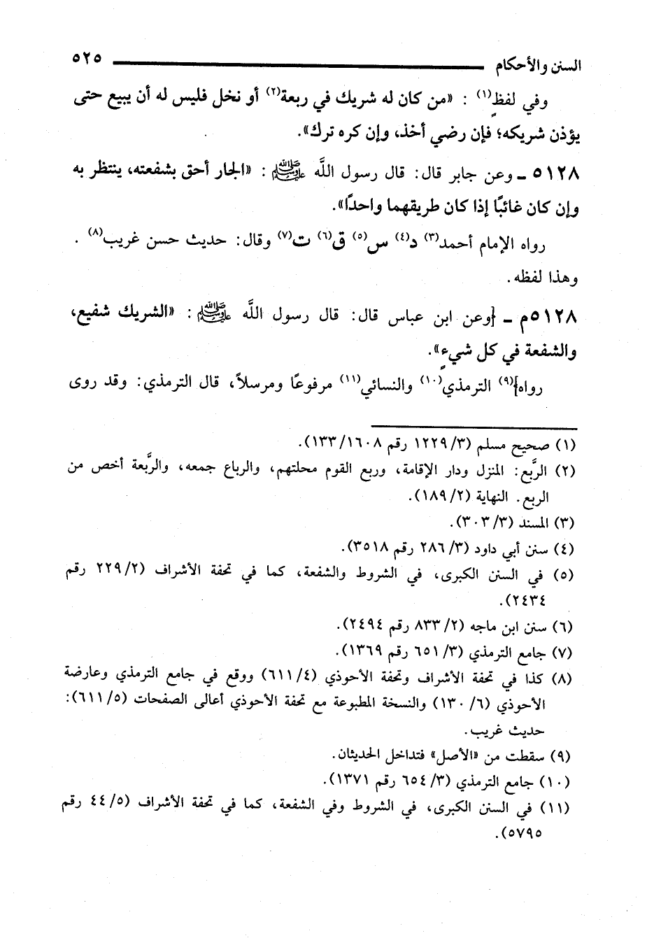 (¬11) في السنن الكبرى، في الشروط وفي الشفعة، كما في تحفة الأشراف (5/ 44 رقم 5795).