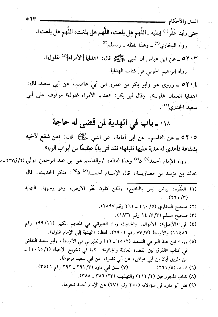 5203 - عن ابن عباس أن النبي - صلى الله عليه وسلم - قال: "هدايا (الأمراء) (¬4) غلول".
