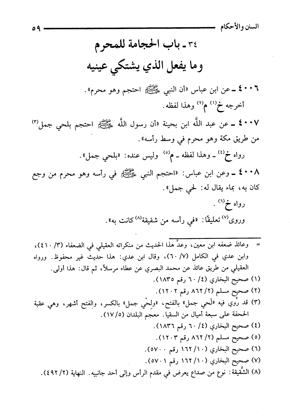 34 - باب الحجامة للمحرم وما يفعل الذي يشتكي عينيه