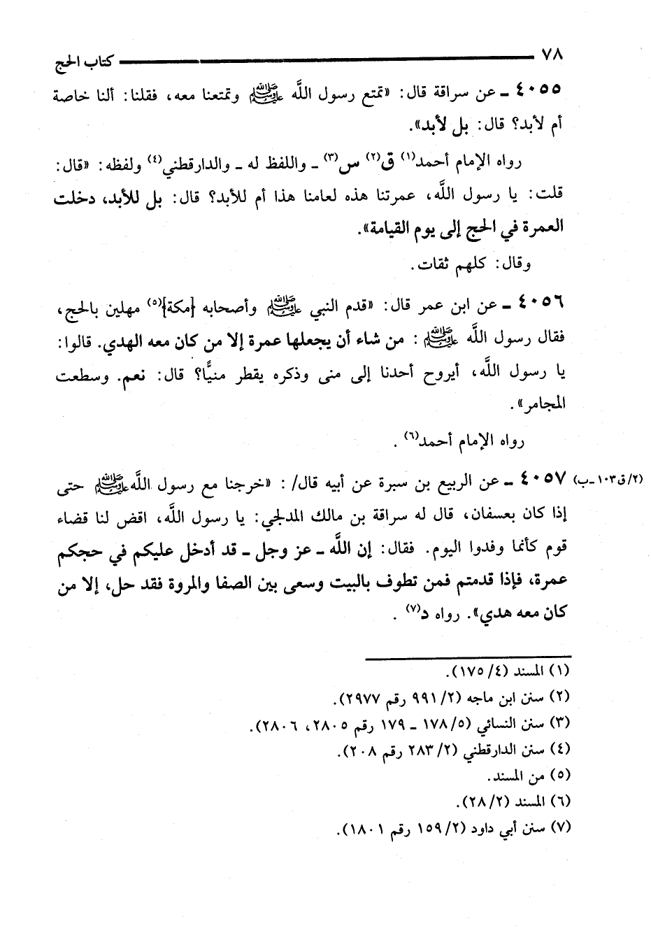 4055 - عن سراقة قال: "تمتع رسول الله - صلى الله عليه وسلم - وتمتعنا معه، فقلنا: ألنا خاصة أم لأبد؟ قال: بل لأبد".