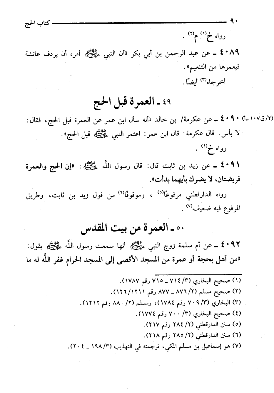 4091 - عن زيد بن ثابت قال: قال رسول الله - صلى الله عليه وسلم -: "إن الحج والعمرة فريضتان، لا يضرك بأيهما بدأت".