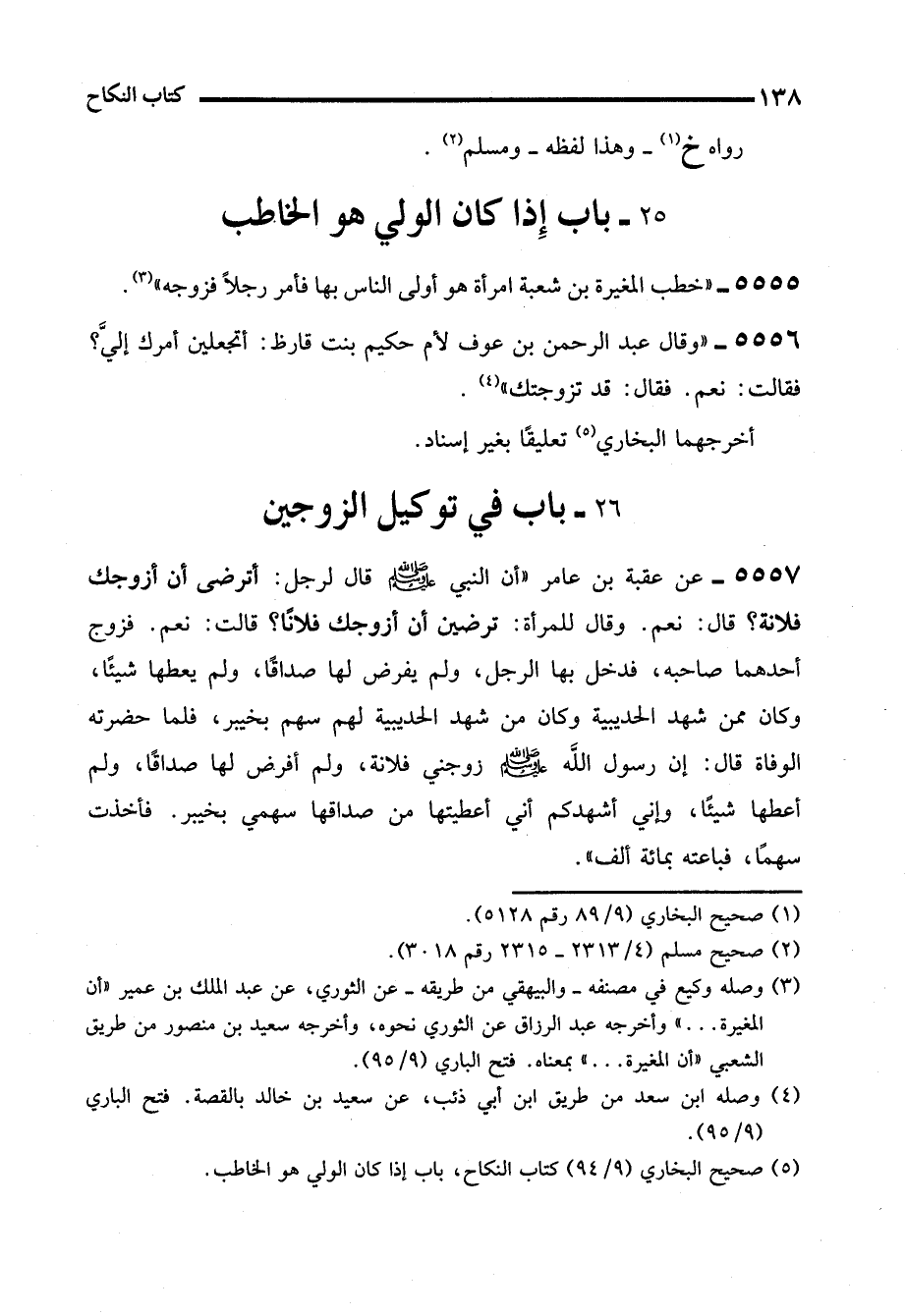 (¬5) صحيح البخاري (9/ 94) كتاب النكاح، باب إذا كان الولي هو الخاطب.