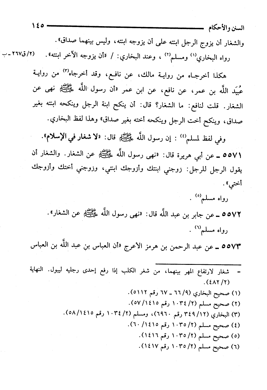 5572 - عن جابر بن عبد الله قال: نهى رسول الله - صلى الله عليه وسلم - عن الشغار".