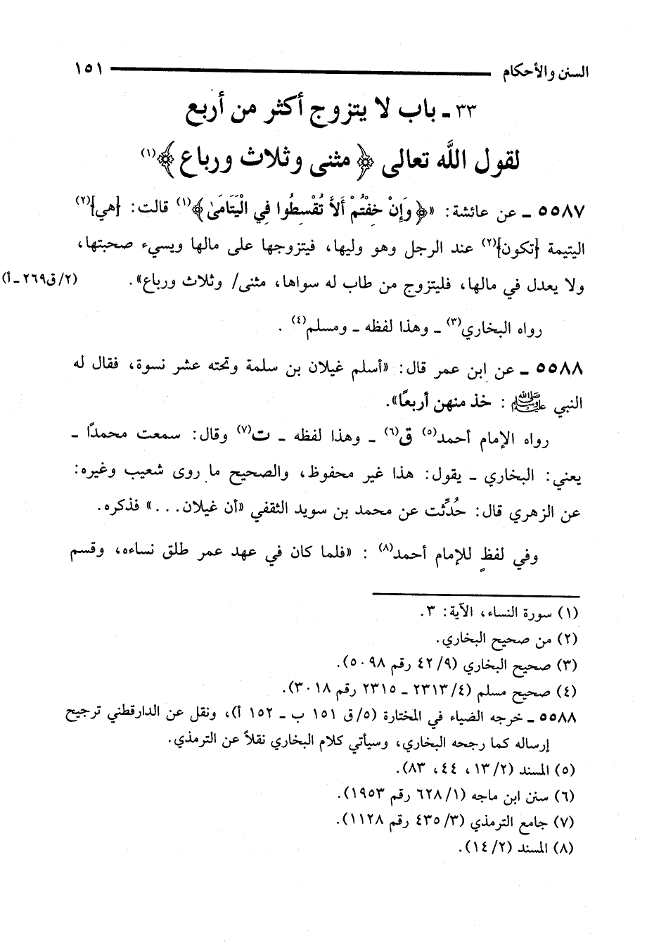 33 - باب لا يتزوج أكثر من أربع لقول الله تعالى (مثنى وثلاث ورباع) (¬1)
