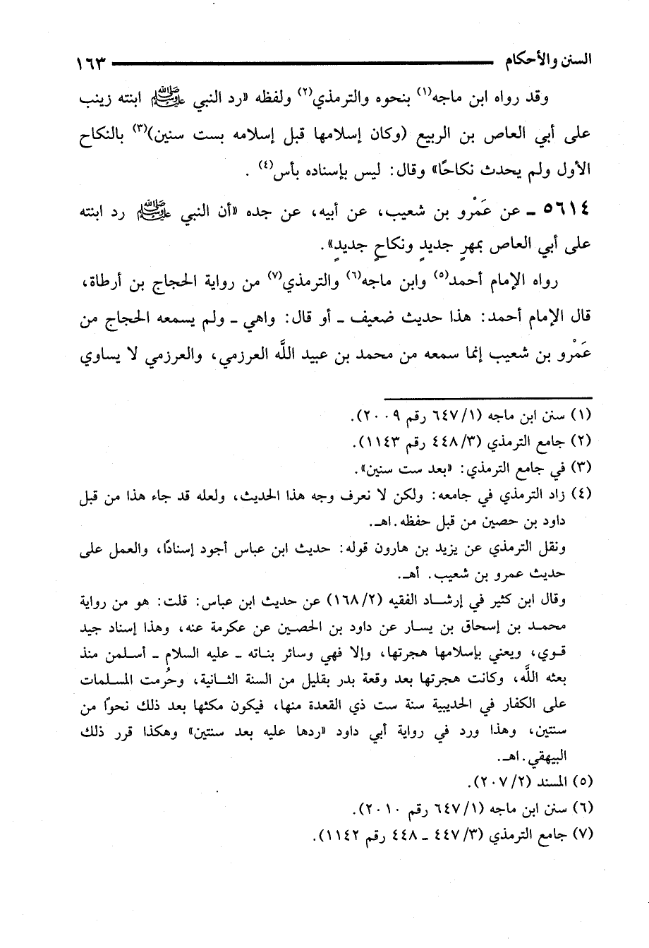 5614 - عن عَمْرو بن شعيب، عن أبيه، عن جده "أن النبي - صلى الله عليه وسلم - رد ابنته على أبي العاص بمهرٍ جديدٍ ونكاحٍ جديدٍ".