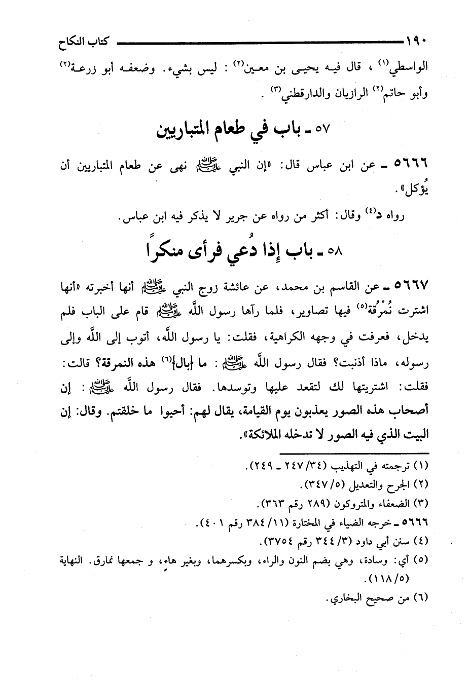 5666 - عن ابن عباس قال: "إن النبي - صلى الله عليه وسلم - نهى عن طعام المتباريين أن يُؤكل".
