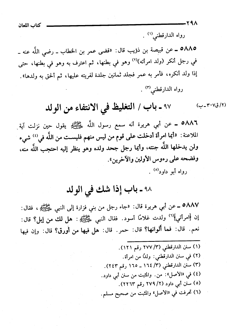 5885 - عن قبيصة بن ذؤيب قال: "قضى عمر بن الخطاب -رضي الله عنه- في رجل أنكر (ولد امرأته) (¬2) وهو في بطنها، ثم اعترف به وهو في بطنها، حتى إذا ولد أنكره، فأمر به عمر فجلد ثمانين جلدة لفريته عليها، ثم ألحق به ولدها".