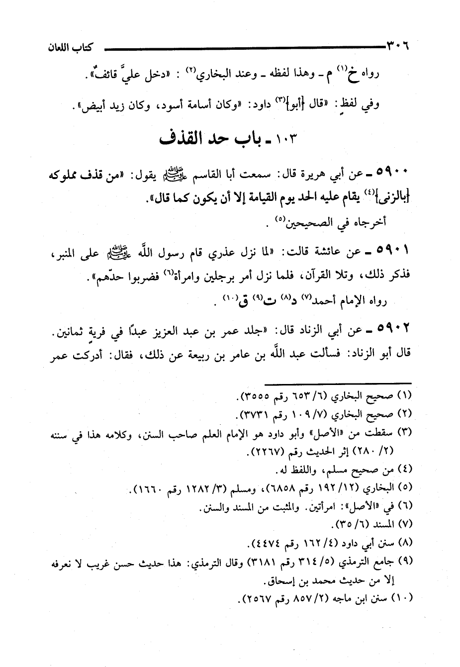 5902 - عن أبي الزناد قال: "جلد عمر بن عبد العزيز عبدًا في فريةٍ ثمانين. قال أبو الزناد: فسألت عبد الله بن عامر بن ربيعة عن ذلك، فقال: أدركت عمر